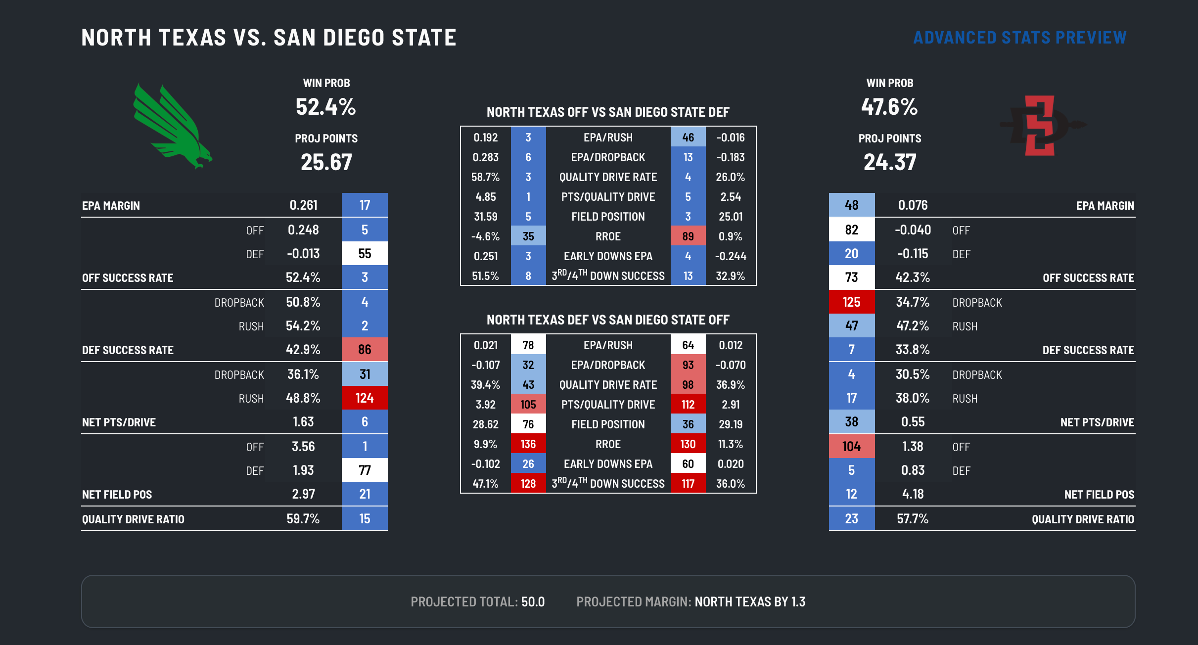 Depending on who plays in this game, who is motivated to play, and how much preparation was put in, this should be a nice test for both squads. San Diego State is a very good defense. They chase the ball, they attack blocks, and they like some pre-snap confusion.