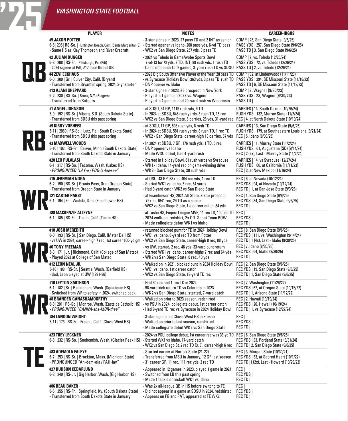 WSU has some talent, but nothing that stands out (yet). I count four South Dakota State guys on the defensive side. In the same way that NT is a good portion of Sam Houston State, this WSU team is South Dakota State. So it goes, in modern college football.