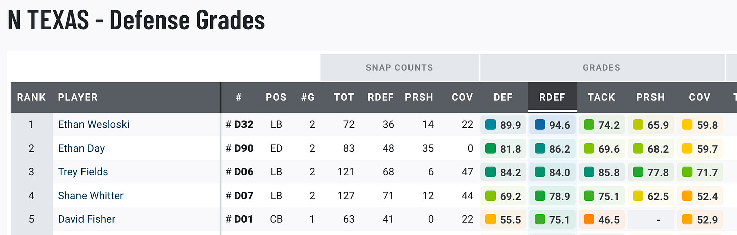 By the by, here are PFF’s top NT run defenders are listed in the following screenshot.