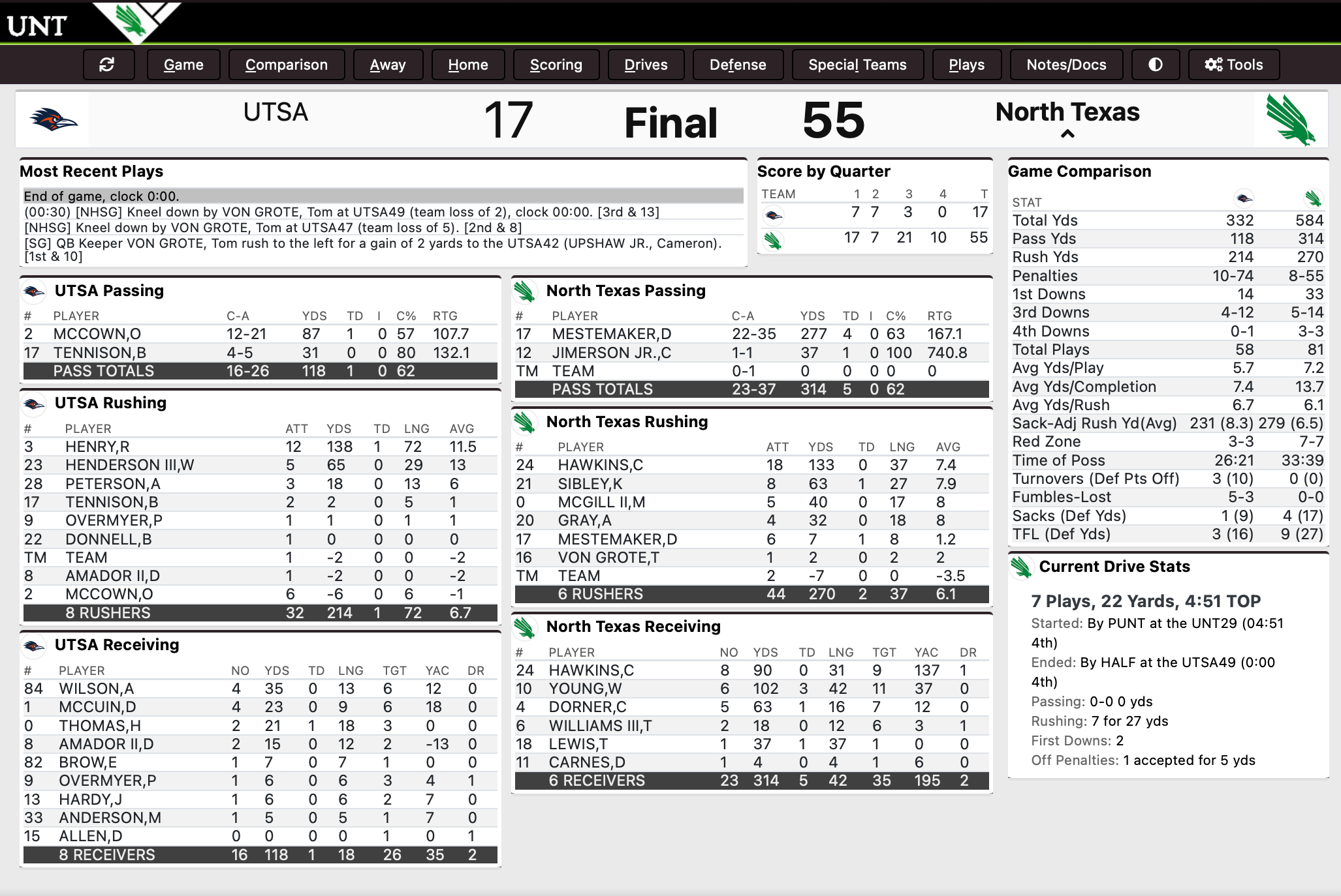Well it didn’t start well. UTSA’s Henry scampered for 72 yards early and NT was down. Drew Mestemaker missed an open look and was bailed out by a roughing call after throwing an interception. NT managed just 3 points.